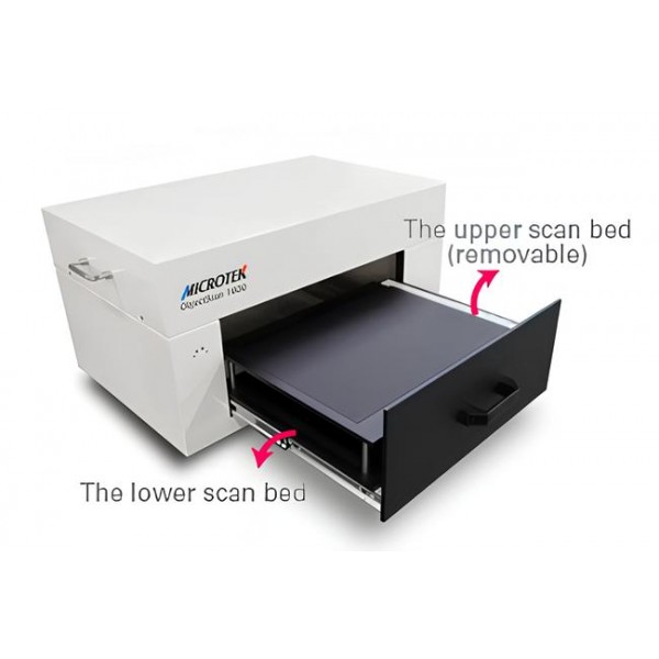 Sa conception dédiée permet d'insérer les matériaux à numériser dans le tiroir du scanner au format A3 (30,5 x 42,4 cm).